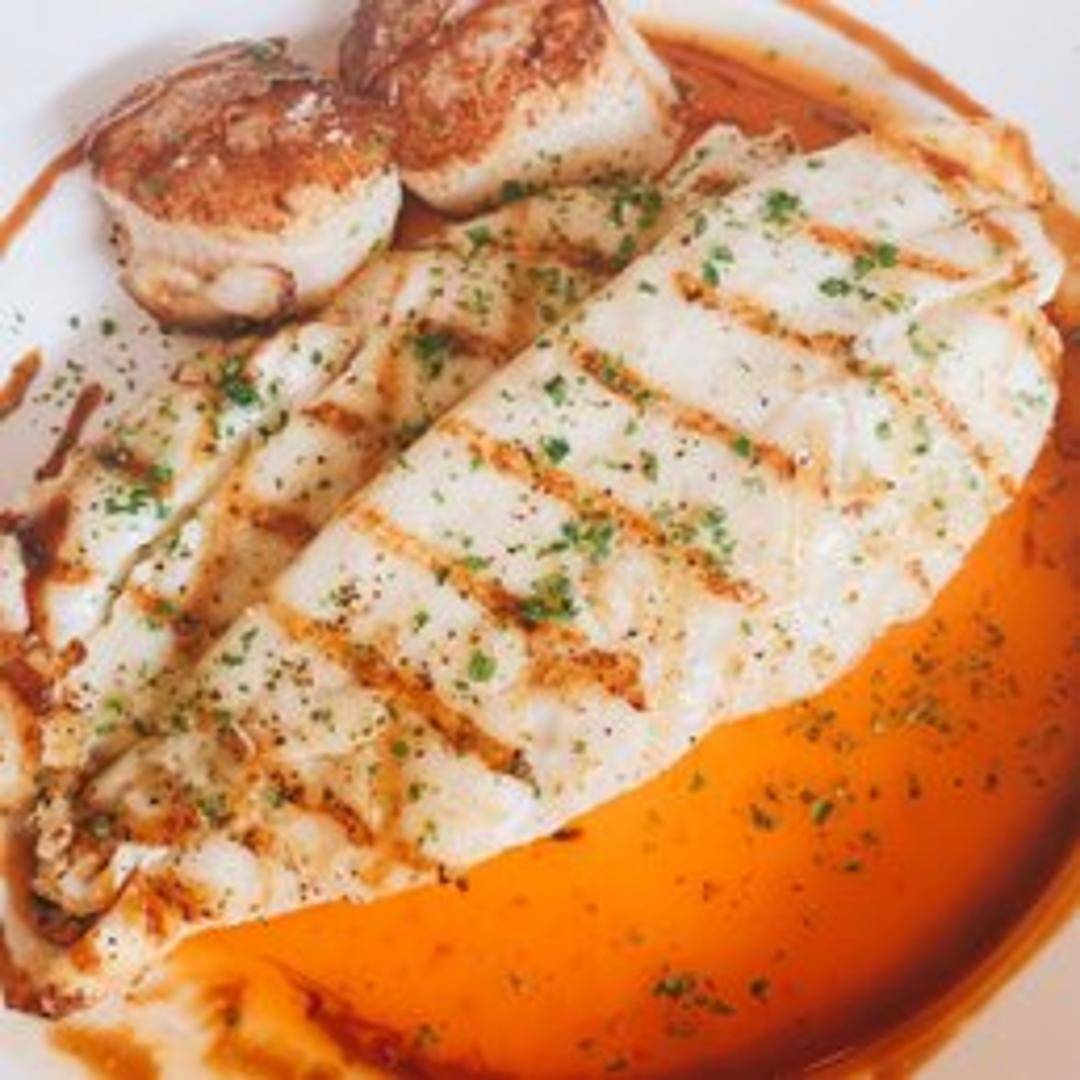 Pan-seared diver scallops, sourced for their premium quality and sweetness. Prepared with a focus on achieving a perfect caramelized crust, the scallops are complemented by seasonal vegetables and a flavorful sauce, highlighting the scallop's natural taste.