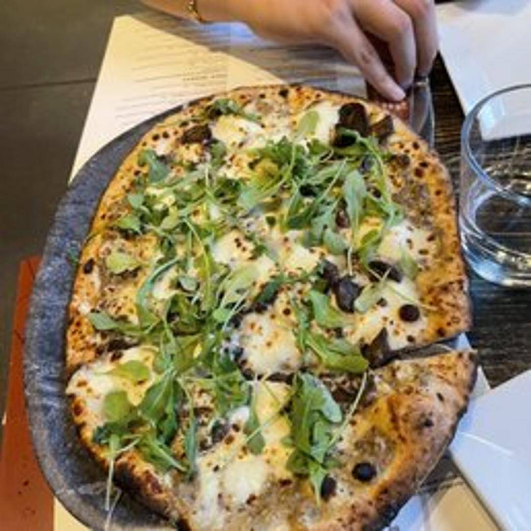 Thin crust flatbread topped with a medley of wild mushrooms, truffle oil, mozzarella cheese, and a sprinkle of fresh herbs.