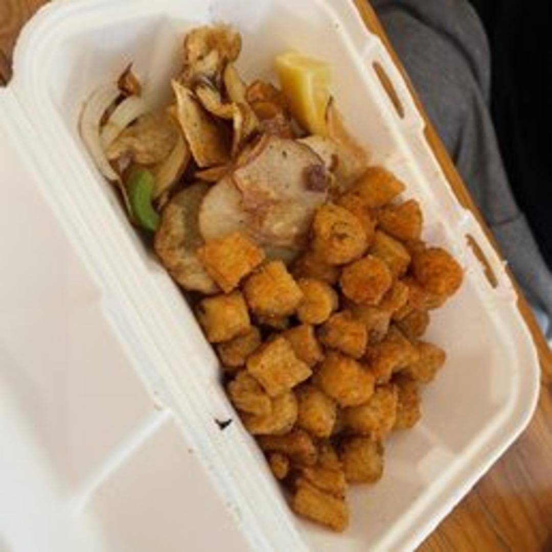 A generous serving of succulent, perfectly seared or crispy fried scallops, showcasing their natural sweetness and tender texture. This satisfying plate includes your choice of classic Southern sides, making for a complete and comforting seafood meal.