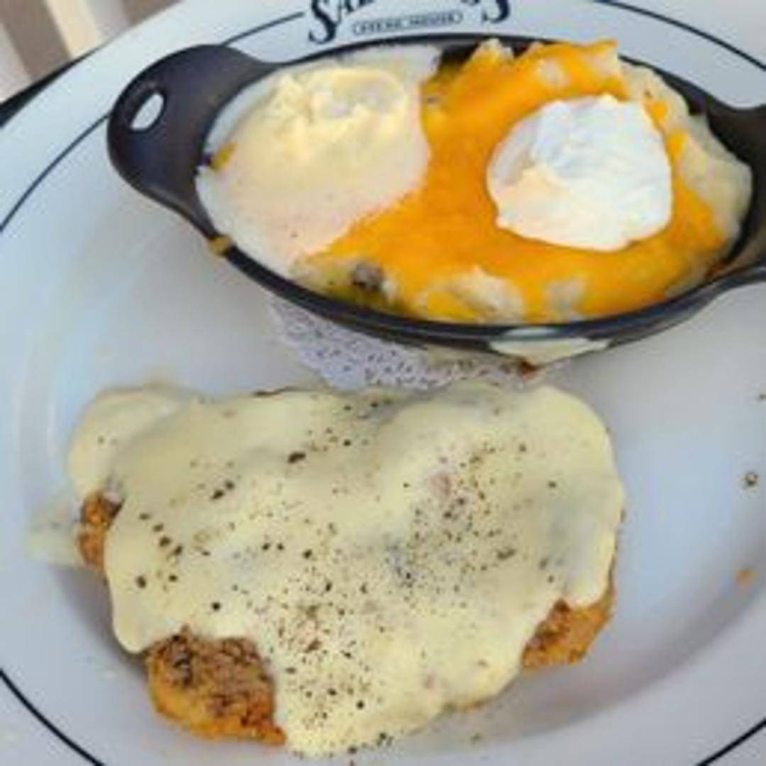 A breaded and fried chicken breast smothered in creamy gravy. Served with your choice of two sides.