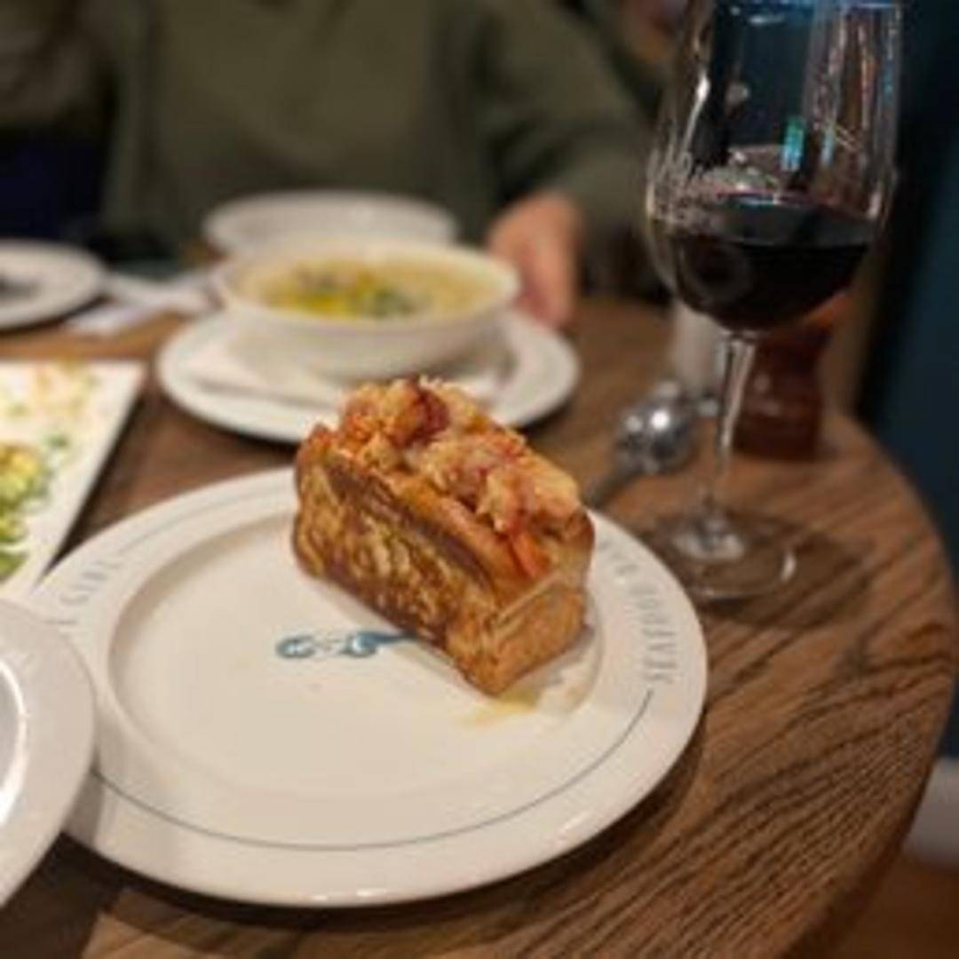 A generous portion of fresh, succulent lobster meat, lightly dressed with mayonnaise and seasonings. Served on a griddled, buttered roll, offering a perfect balance of sweet lobster and toasted bread.