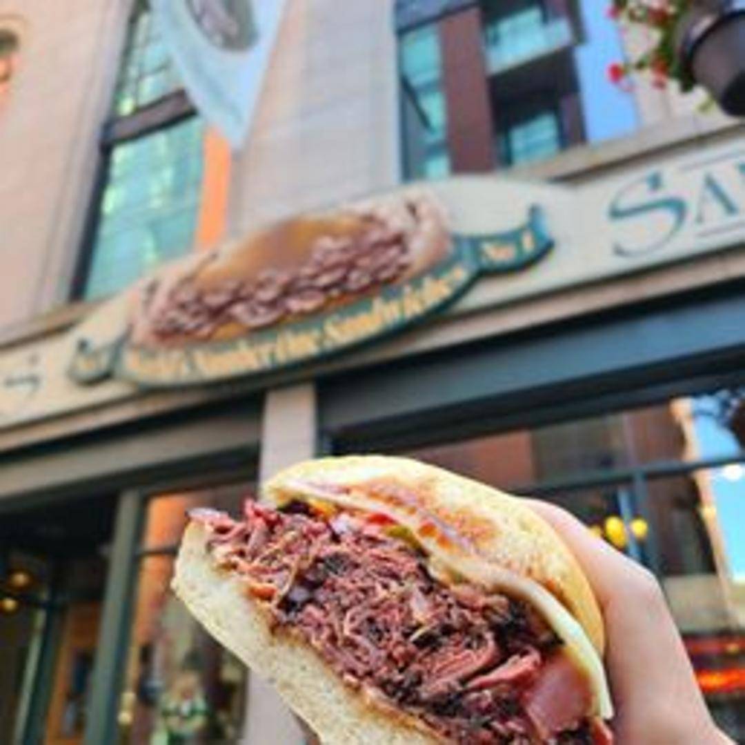 Spicy pastrami with pepper jack cheese, hot cherry peppers, and horseradish sauce on a toasted roll.