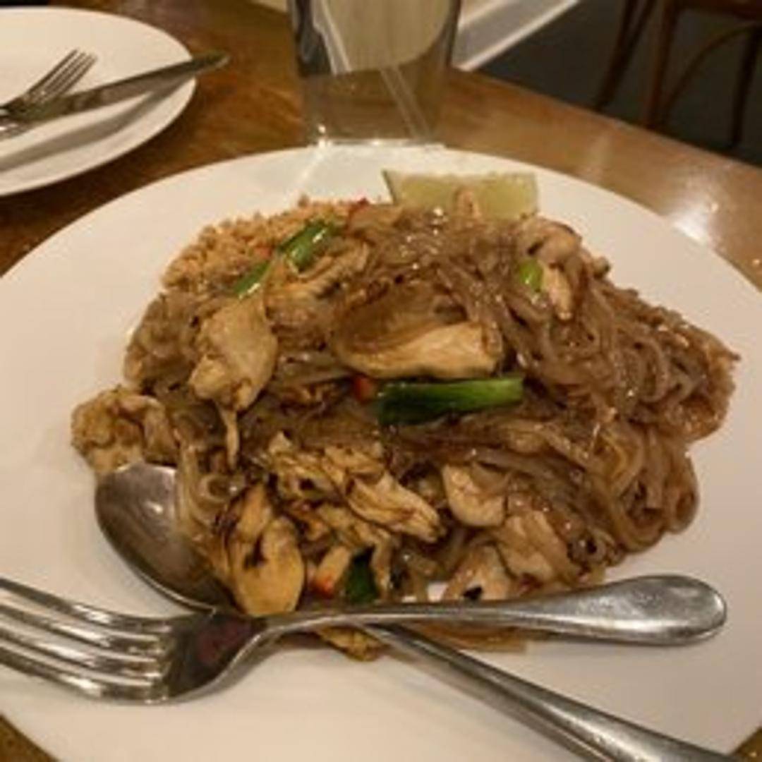 A quintessential Thai stir-fried noodle dish, Pad Thai features tender rice noodles wok-tossed with a harmonious blend of sweet, sour, and savory tamarind sauce. It is traditionally prepared with scrambled eggs, firm tofu, crunchy bean sprouts, and fragrant scallions, then generously garnished with crushed peanuts and a fresh lime wedge. Often available with your choice of protein, such as chicken, shrimp, or a vegetarian option, this beloved classic offers a delightful balance of textures and authentic Thai flavors.