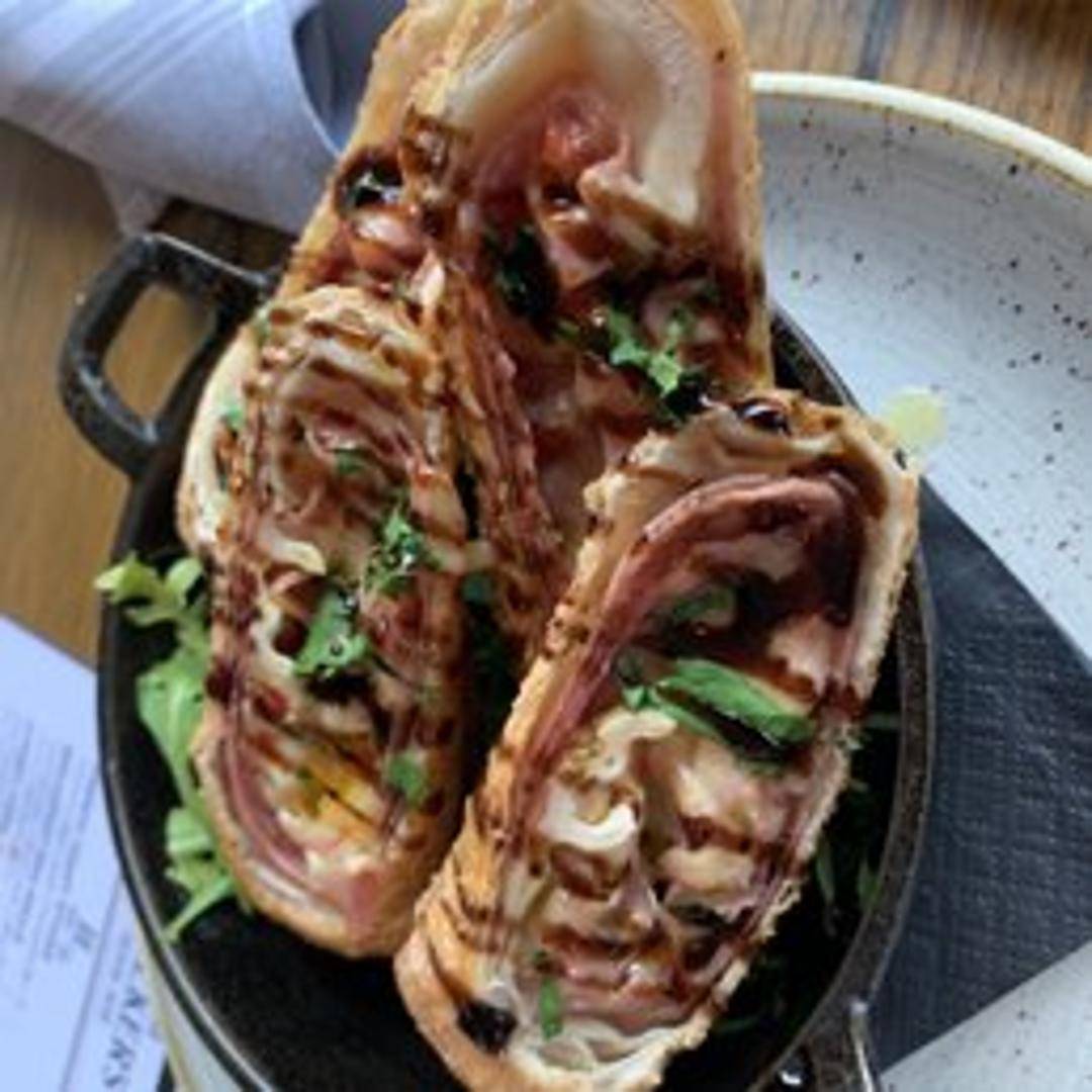 Savory egg rolls filled with classic Italian ingredients such as Italian sausage, peppers, onions, and mozzarella cheese. Crispy on the outside and flavorful on the inside, served with a side of marinara sauce for dipping.