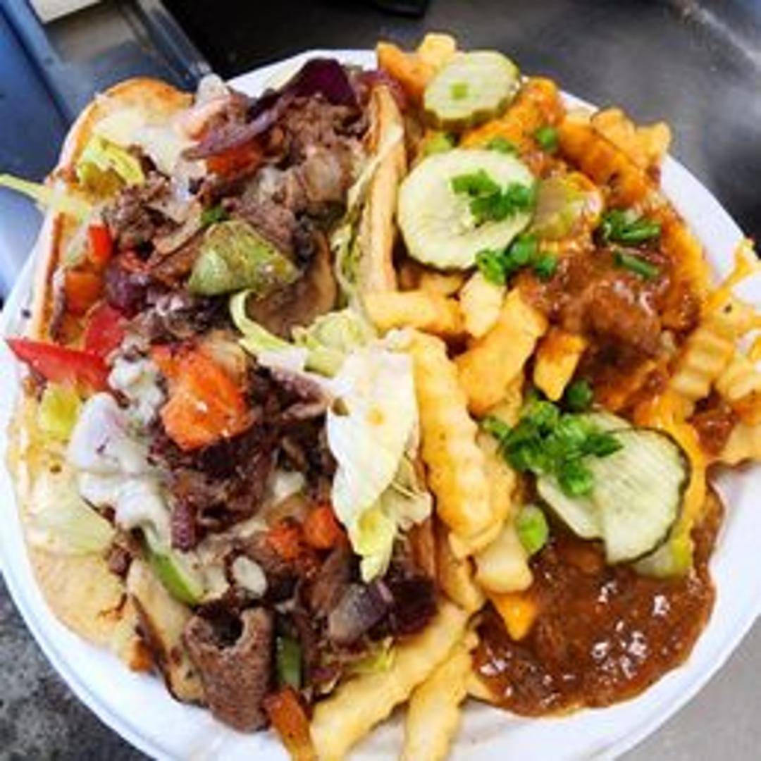 Thinly sliced steak grilled with onions and peppers, topped with melted cheese on a toasted hoagie roll.