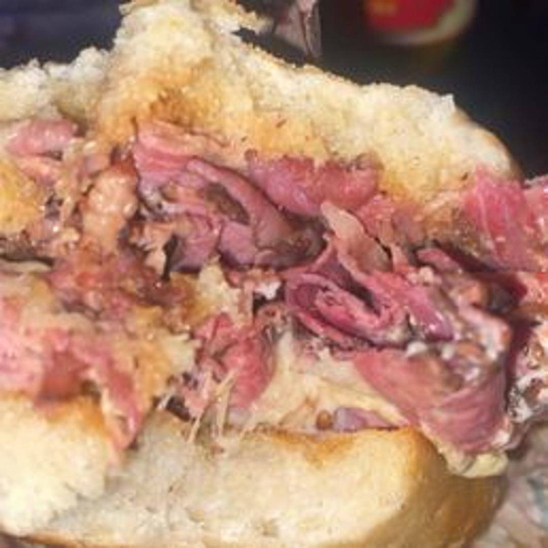 A hearty sandwich featuring a generous combination of pastrami and corned beef, layered on rye bread with mustard. A true deli classic.