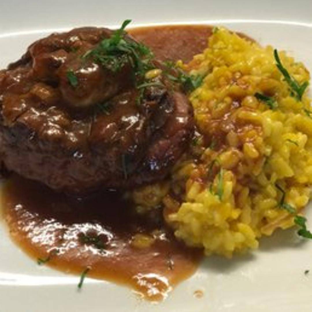 Tender braised veal shanks slow-cooked in a savory sauce of vegetables, white wine, and herbs. Served with a gremolata of lemon zest, garlic, and parsley. Accompanied by creamy polenta or risotto.