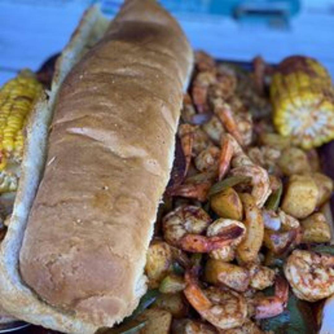 A large tray loaded with delicious shrimp, ideal for gatherings or parties. Typically includes a variety of shrimp preparations, like grilled, fried, and boiled, along with complementary sides and sauces. Perfect for groups.