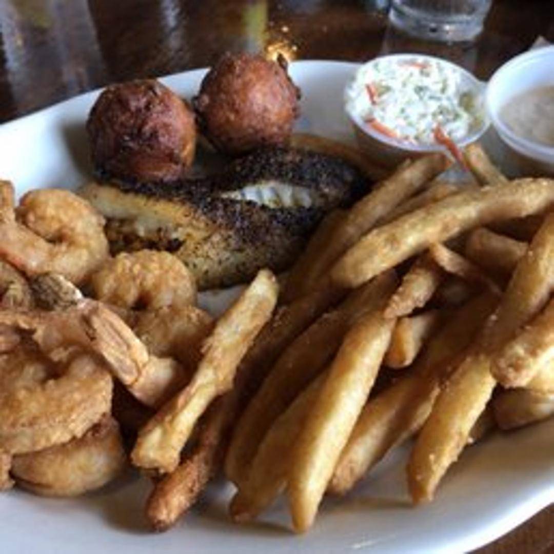 Fresh grouper fillet, blackened with Cajun spices and grilled to perfection. Served on a toasted bun with lettuce, tomato, onion, and a side of tartar sauce. Includes your choice of side.