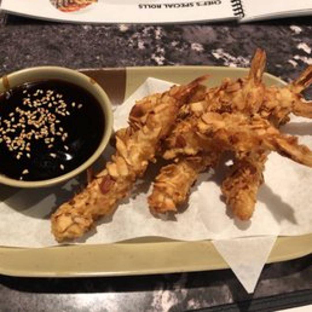 Crispy fried shrimp coated in toasted almonds, served with a sweet and tangy dipping sauce.