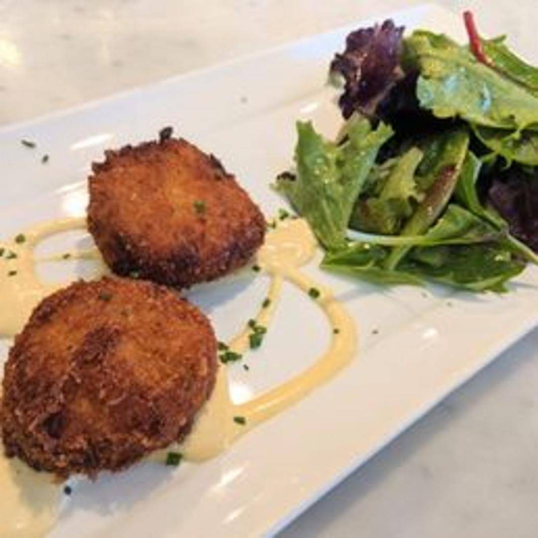 Expertly crafted with generous chunks of sweet, premium crab meat, delicately seasoned with a blend of herbs and spices, then lightly pan-seared to achieve a beautiful golden-brown exterior and a tender, moist interior. Served with a vibrant lemon-dill aioli, showcasing the natural richness of the crab.
