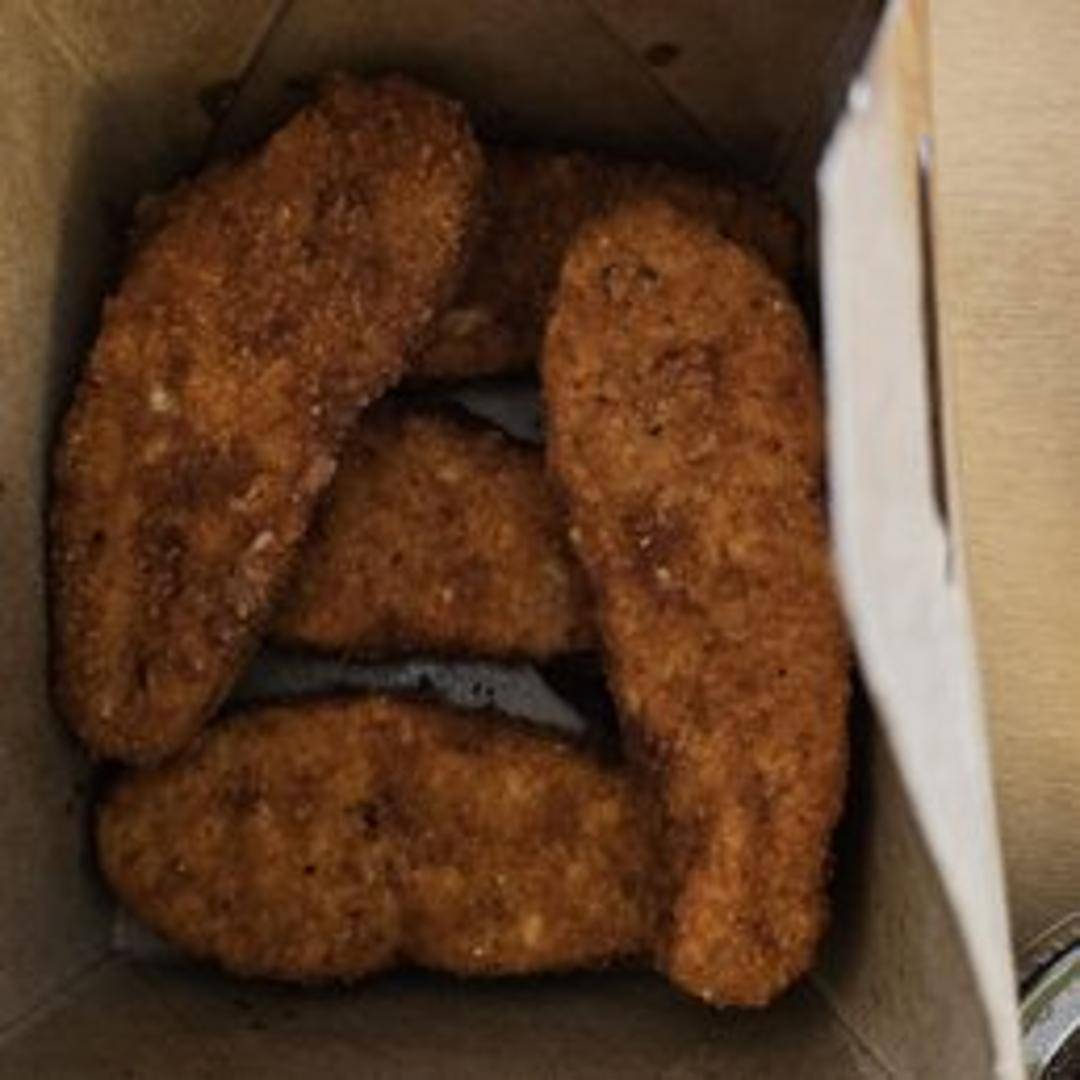 Crispy, golden-brown vegan chicken strips, perfect for dipping. Served with your choice of dipping sauce.