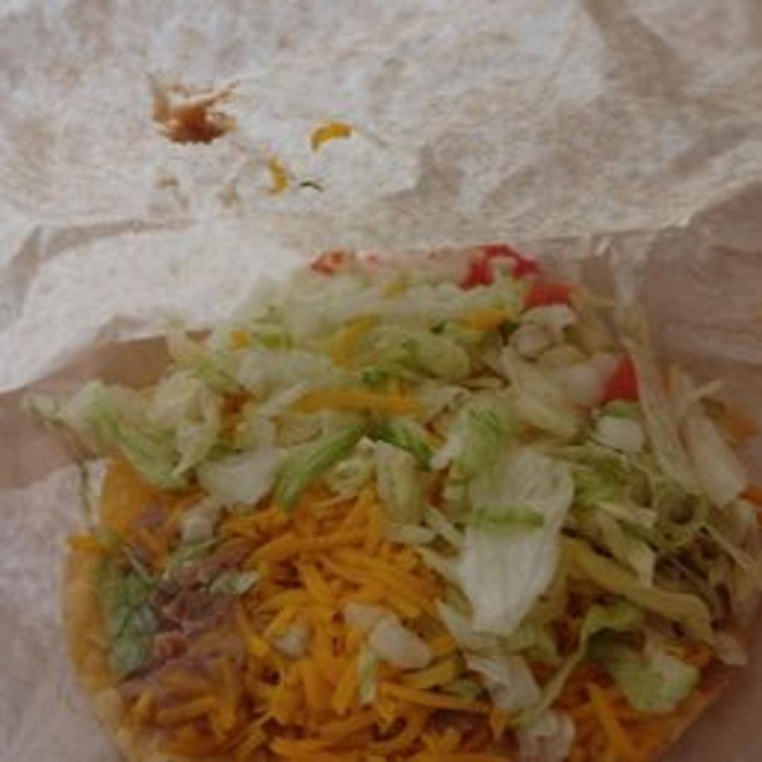 A crispy, flat corn tortilla topped with your choice of seasoned ground beef, shredded chicken, or refried beans. Piled high with shredded lettuce, diced tomatoes, cheddar cheese, and your choice of mild or spicy green chili. A refreshing and crunchy classic.