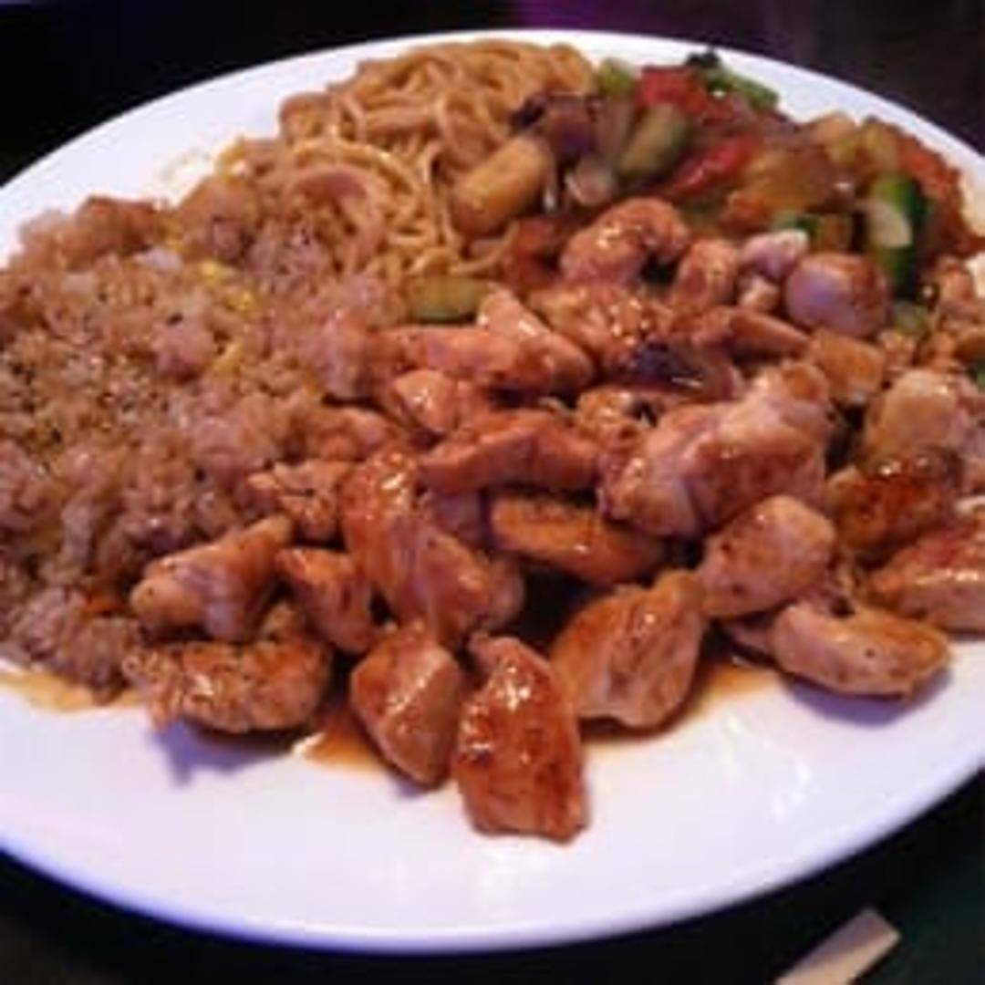 Grilled chicken prepared in the hibachi style, typically served with stir-fried vegetables and a flavorful sauce, often teriyaki.