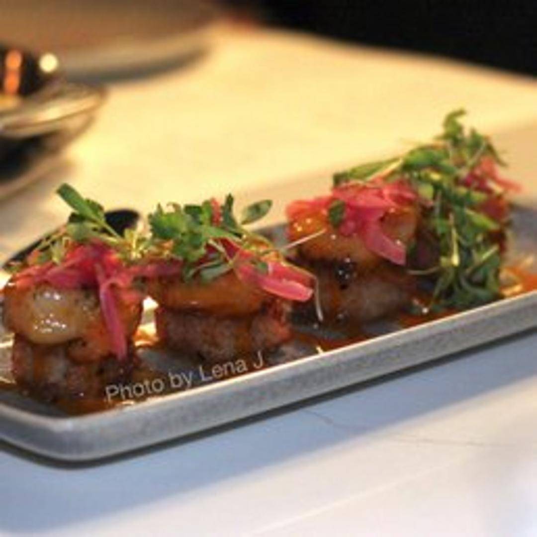 Crispy fried shrimp tossed in a sweet and spicy sauce. Often served on a bed of lettuce or cabbage and garnished with sesame seeds and green onions.