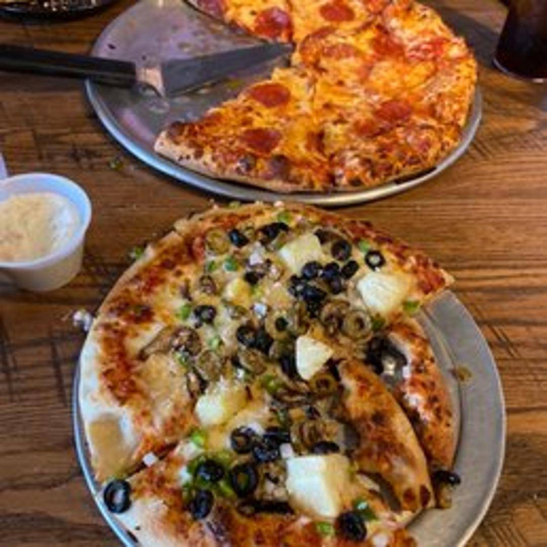 A classic pizza featuring a savory tomato sauce base, generous amounts of melted mozzarella cheese, and topped with perfectly seasoned pepperoni slices. Baked to a golden-brown crust. Available in various sizes.