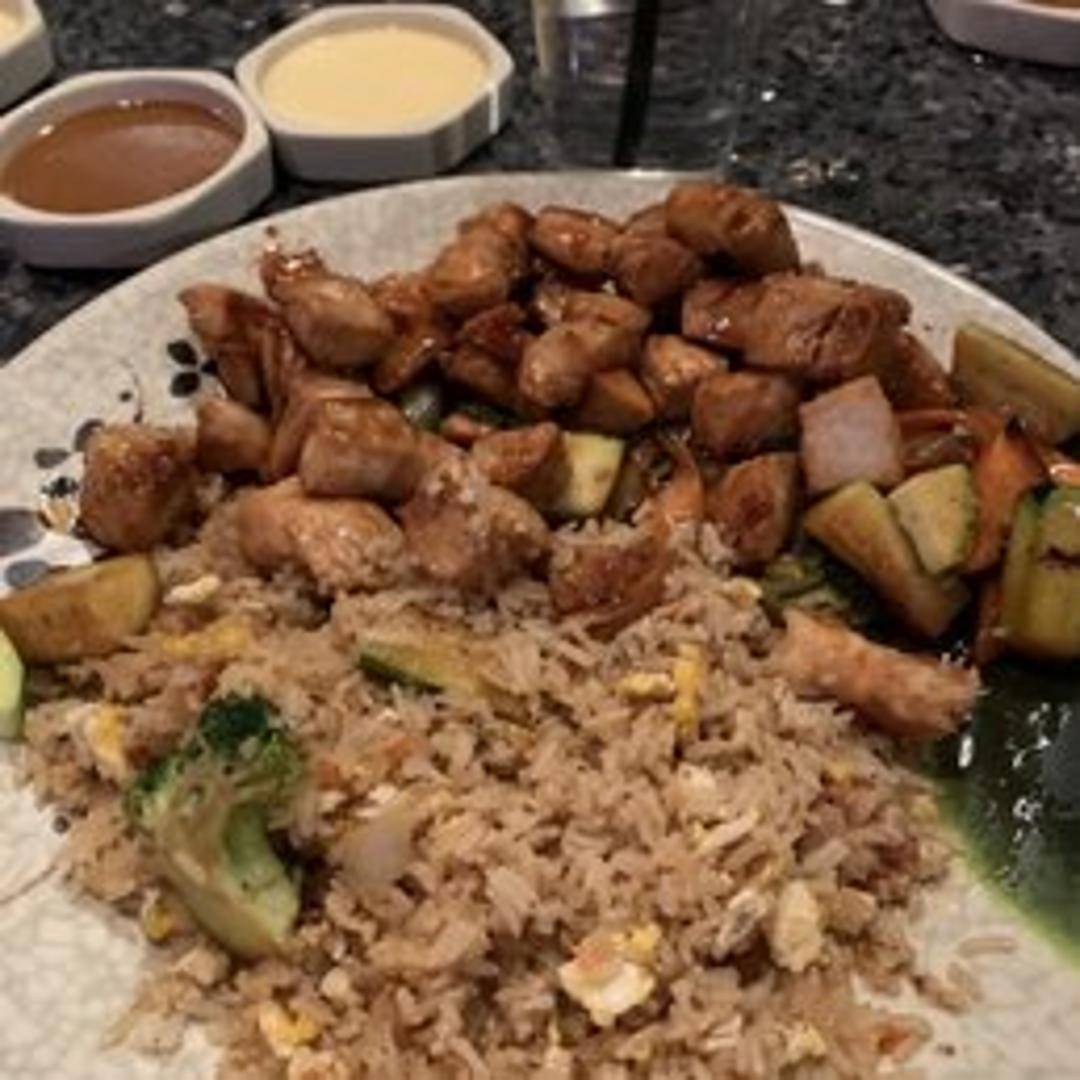 Grilled chicken prepared on a hibachi grill with traditional seasonings. Served with a side of fried rice or noodles and grilled vegetables.