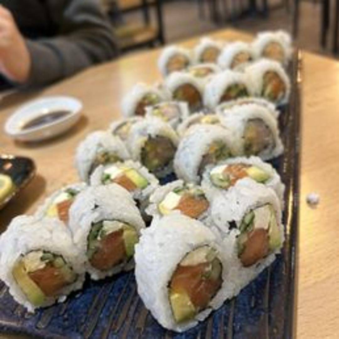 A simple yet flavorful sushi roll featuring fresh yellowtail (hamachi) and sushi rice, wrapped in nori seaweed. Often served with a side of pickled ginger, wasabi, and soy sauce.