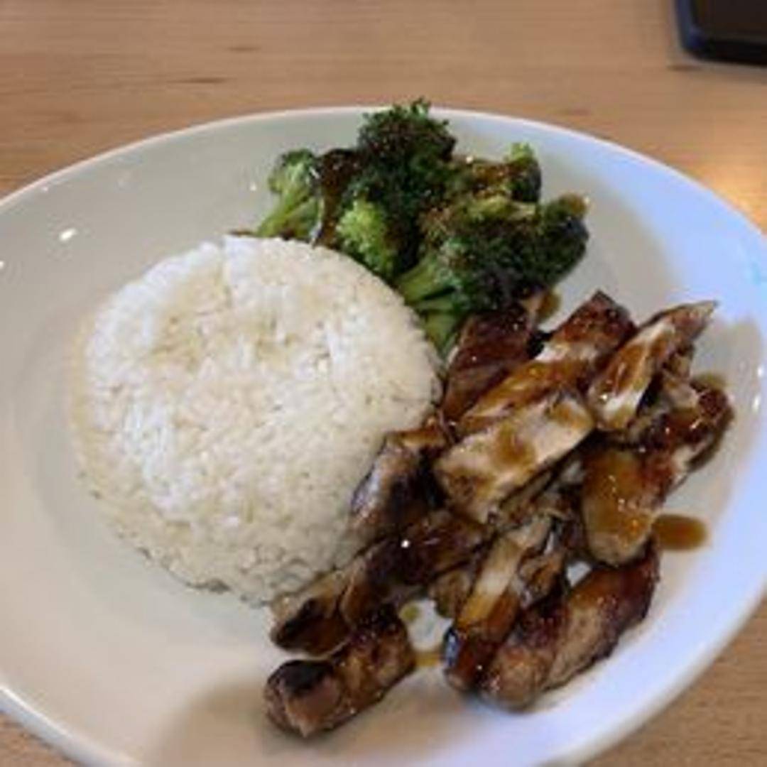 Grilled chicken glazed with a classic Japanese teriyaki sauce. Served with a side of rice and vegetables.
