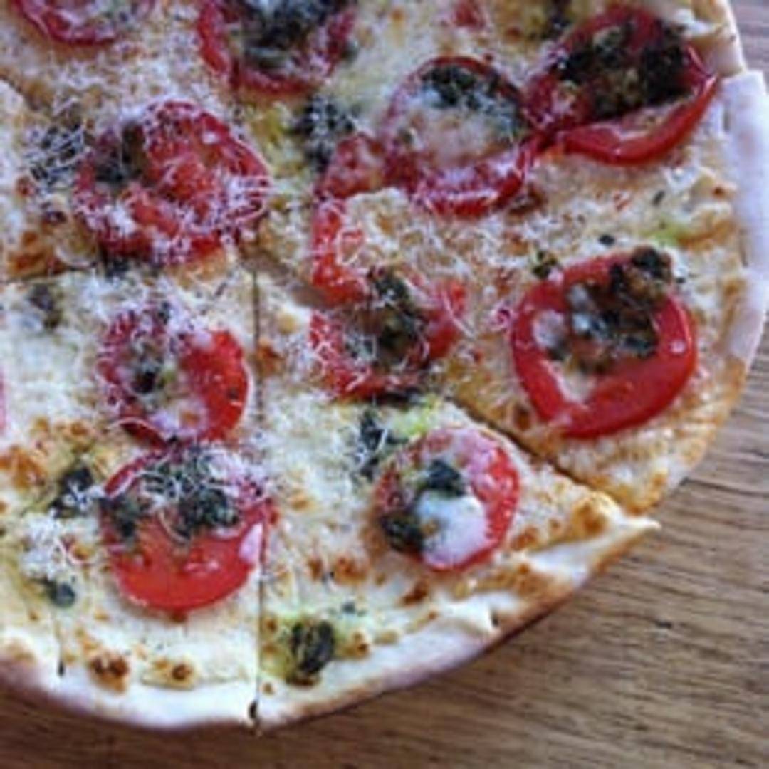 A creamy white pizza featuring a blend of ricotta, mozzarella, and Parmesan cheeses, seasoned with garlic and herbs, and baked on our signature crust.