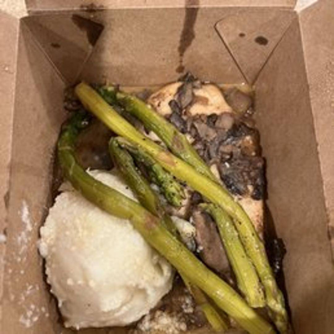 Tender chicken breast sautéed with mushrooms in a rich Marsala wine sauce. Served with a side of mashed potatoes or pasta.