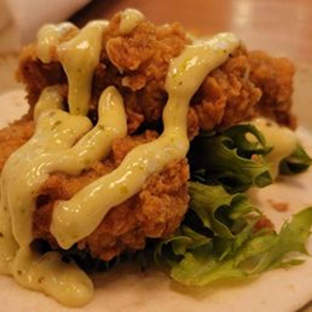 Experience a coastal culinary delight with our Fried Oyster Tacos. Succulent, briny oysters are lightly breaded and fried to a golden crisp, then nestled in warm, soft tortillas. Crowned with a vibrant medley of fresh slaw, a zesty crema, and a sprinkle of cilantro, these tacos offer a harmonious blend of textures and bold flavors.