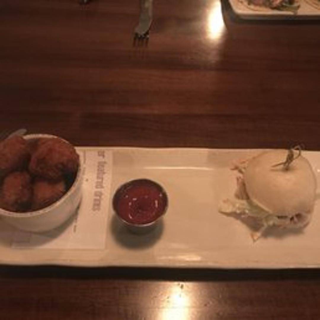 Tender, juicy pieces of perfectly fried chicken tucked into soft, cloud-like steamed bao buns. These fusion buns are enhanced with crisp pickled vegetables and a savory, house-made sauce, offering a delightful combination of textures and flavors in every bite.