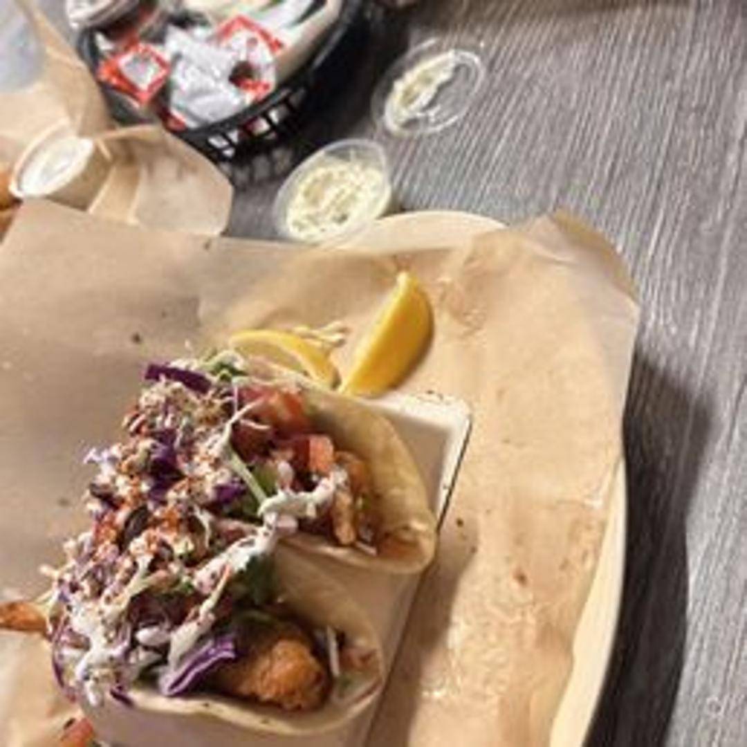 Two soft tortillas filled with grilled or fried fish, topped with shredded cabbage, pico de gallo, and a creamy cilantro-lime sauce. A fresh and flavorful option for a light lunch or dinner.