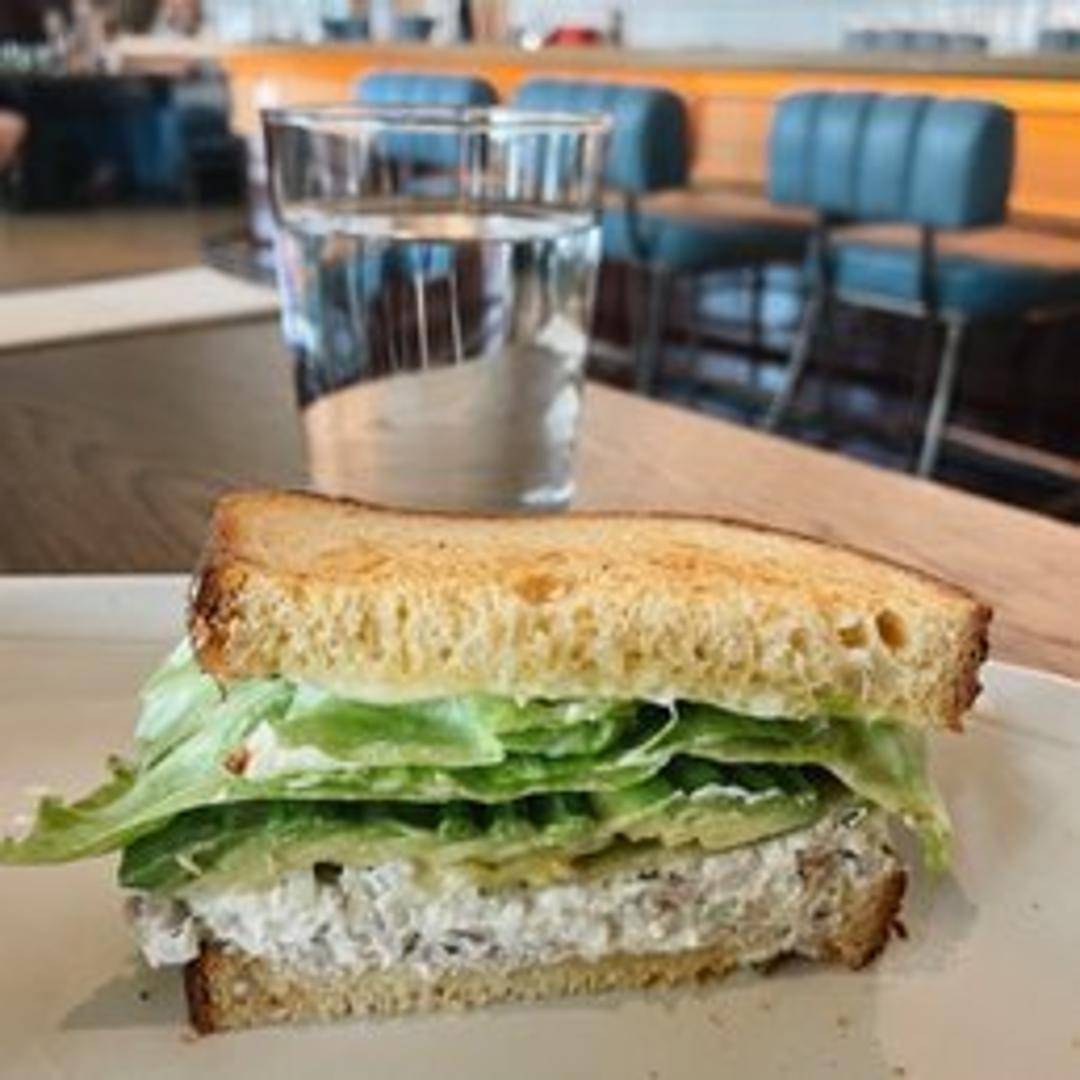 Classic chicken salad made with tender chicken, celery, mayonnaise, and seasonings, served on your choice of bread with crisp lettuce and ripe tomato.