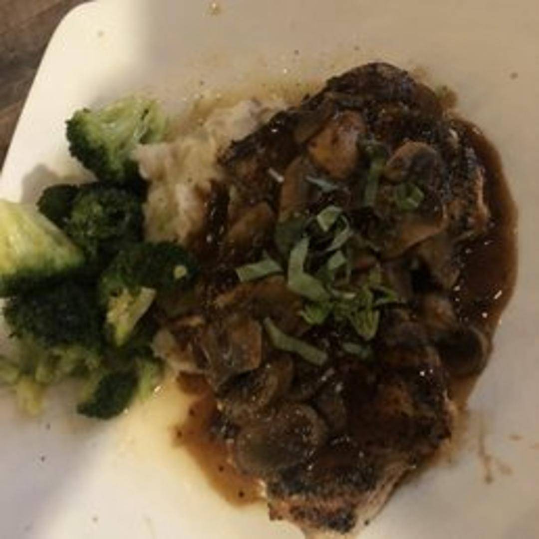 Sautéed chicken breast in a rich Marsala wine sauce with mushrooms. Served with mashed potatoes and seasonal vegetables.