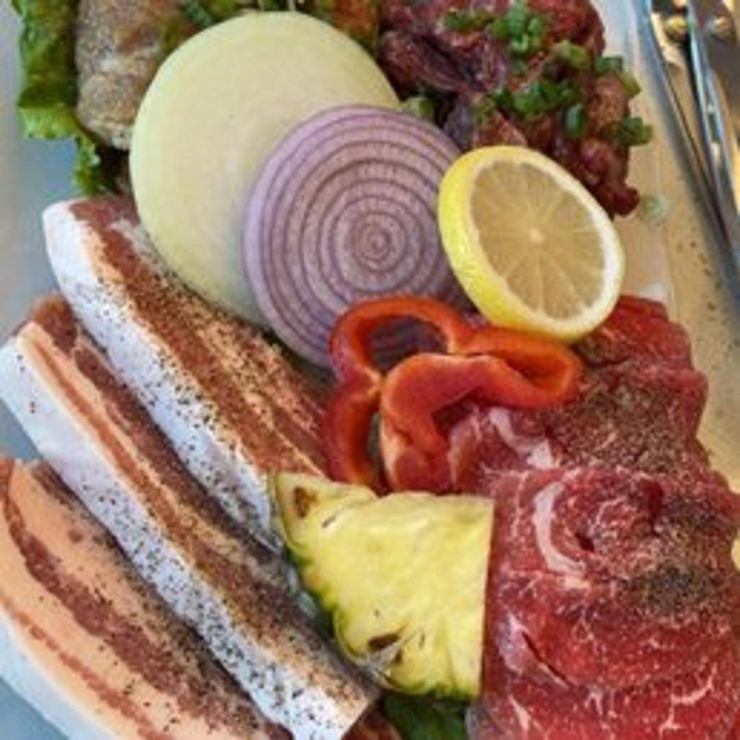 Thinly sliced beef brisket, quickly grilled at the table. Served with dipping sauces and banchan (side dishes).