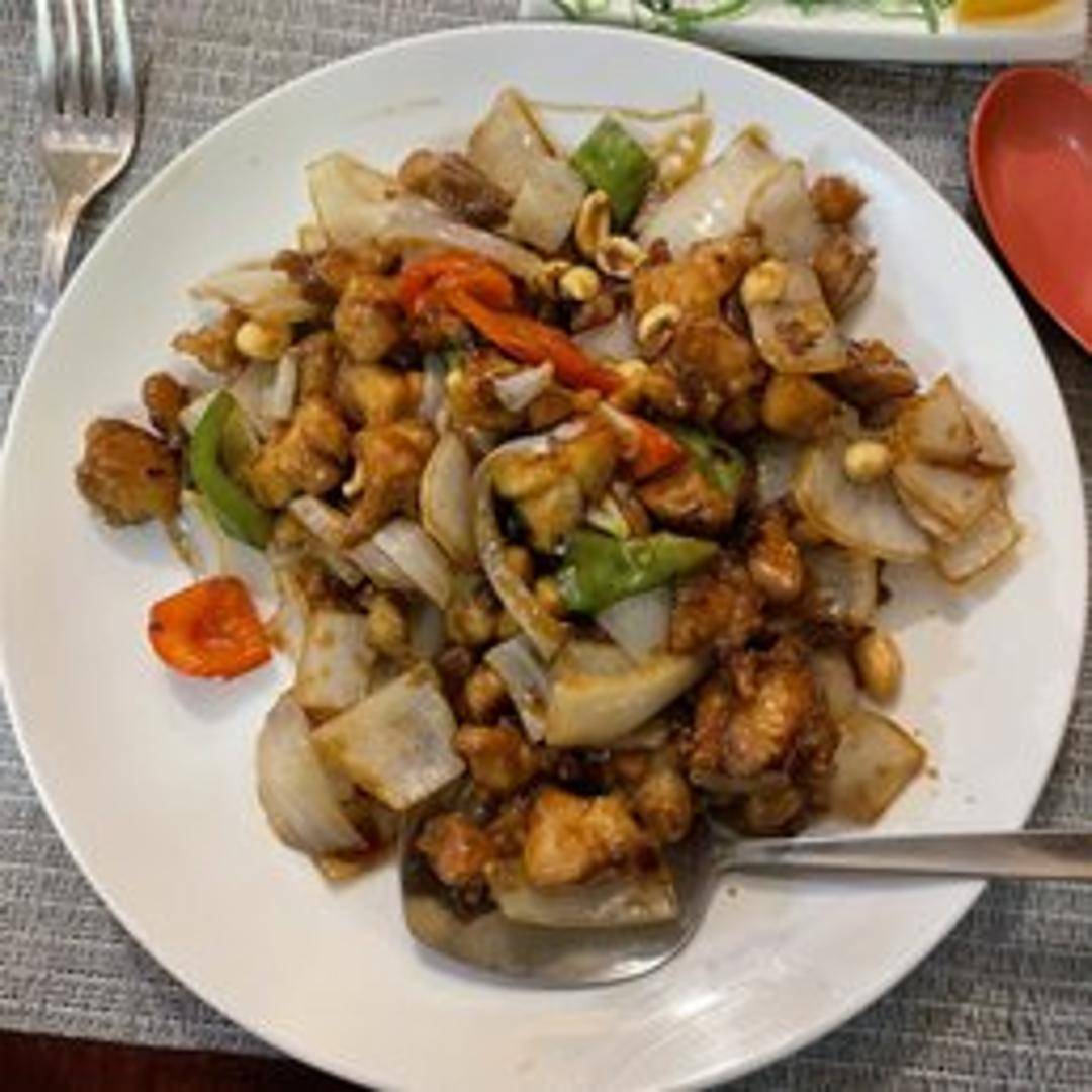A celebrated Sichuan dish featuring tender diced chicken stir-fried with roasted peanuts, vibrant bell peppers, crunchy zucchini, and dried red chilies. The dish is known for its distinctive spicy, sweet, and tangy sauce, balanced with the unique numbing sensation of Sichuan peppercorns.