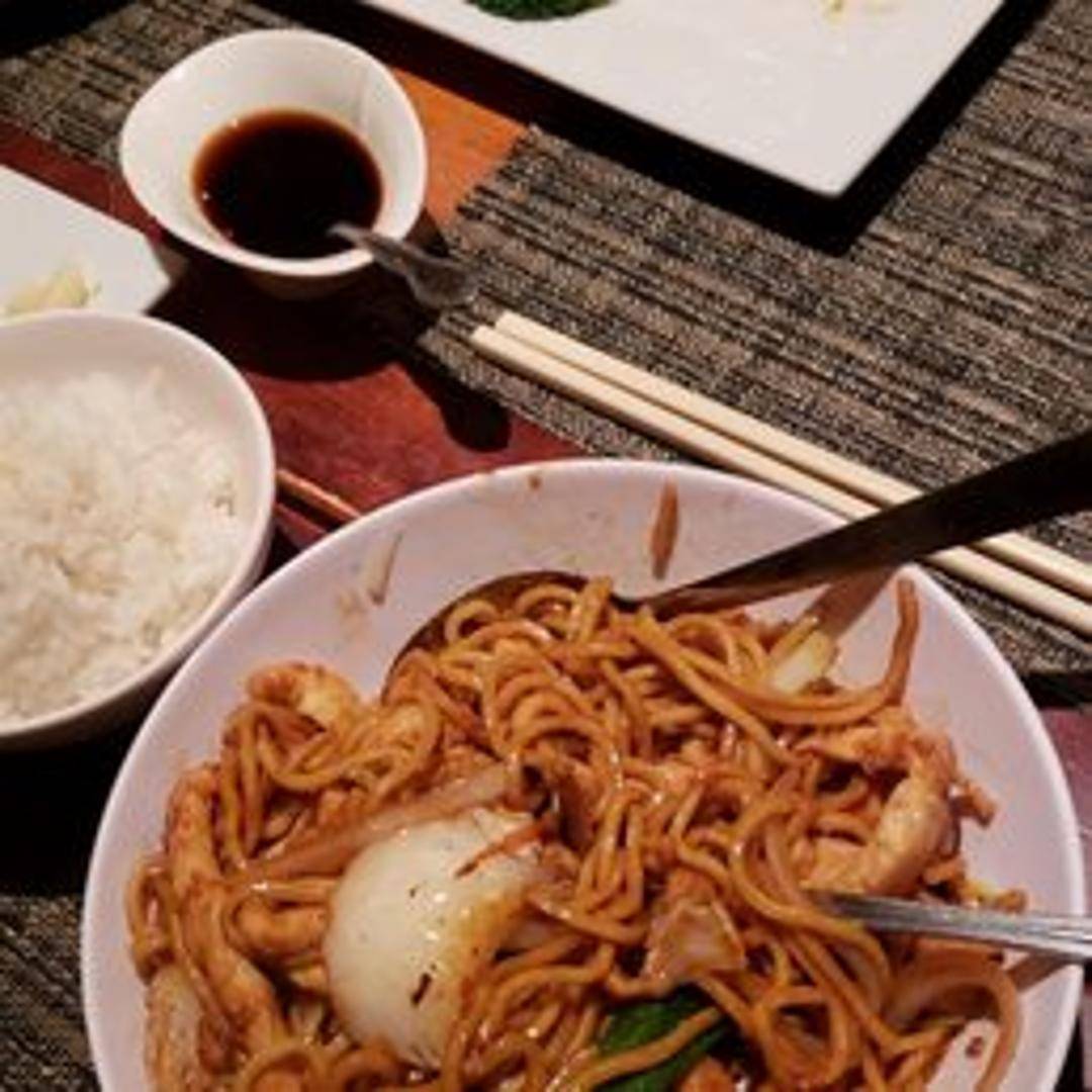 Savor hearty, thick wheat noodles expertly stir-fried with a colorful medley of fresh vegetables such as cabbage, carrots, and snow peas, all tossed in a savory brown sauce. Customizable with your choice of protein like tender chicken, beef, or shrimp, this dish offers a comforting and flavorful experience.