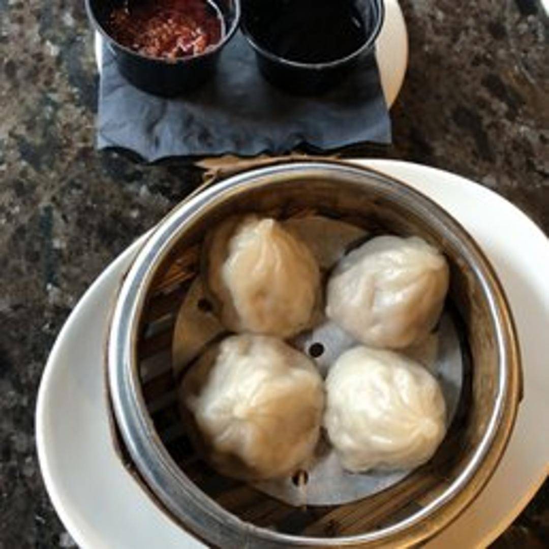 Authentic Shanghai-style steamed dumplings, famously known as Xiao Long Bao or soup dumplings. Each delicate, pleated dumpling holds a savory filling of seasoned ground pork (and sometimes crab) along with a rich, gelatinized broth that melts into a delicious, hot soup upon steaming. Served fresh and hot, they are best enjoyed with a splash of black vinegar and ginger shreds.