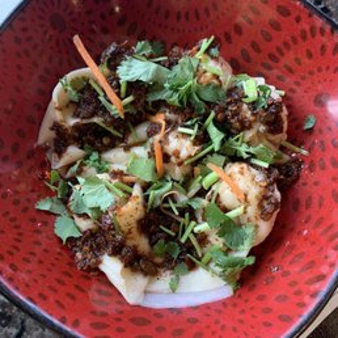 Delicate steamed wontons filled with a savory blend of seasoned meat, expertly bathed in a fiery and aromatic Szechuan chili oil sauce. A bold and flavorful appetizer or small plate with a satisfying, zesty kick.