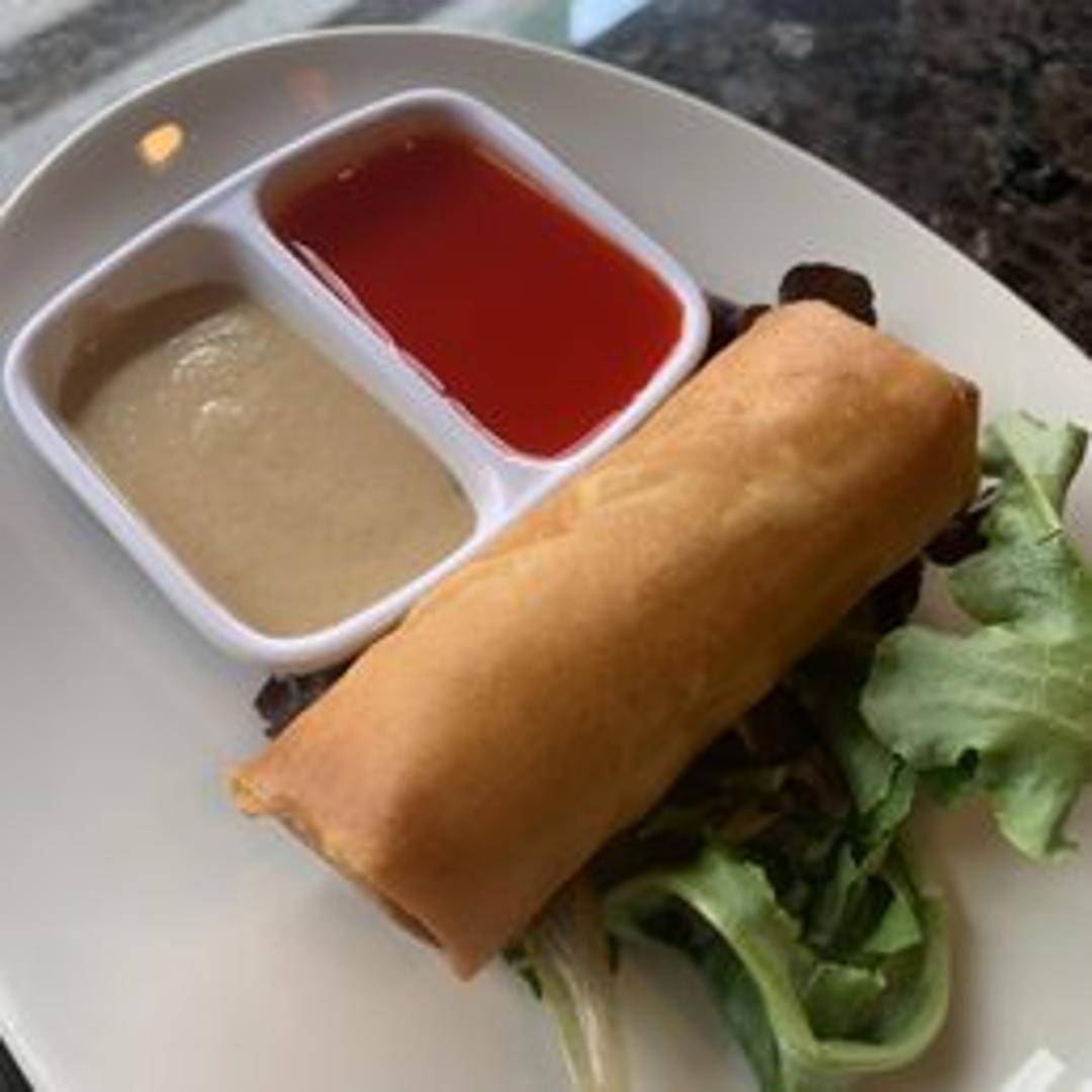 Golden-fried, crispy spring rolls generously filled with a flavorful medley of fresh, finely shredded vegetables. These perfect appetizers are often served with a side of sweet chili dipping sauce for an extra burst of flavor.