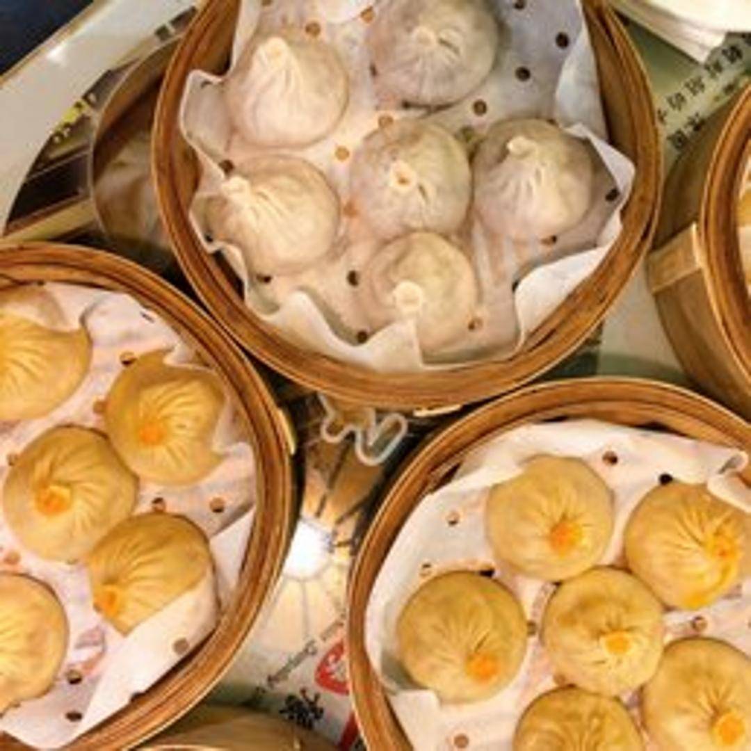 Six delicate, steamed dumplings filled with a savory broth infused with crab meat and seasoned pork. Each dumpling bursts with flavorful soup and tender filling upon the first bite, offering a classic Shanghai delicacy.
