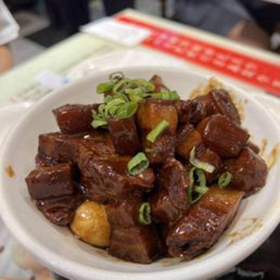 Tender and flavorful pork belly, slow-braised in a rich soy sauce-based sauce with aromatic spices. Served with a side of steamed vegetables.