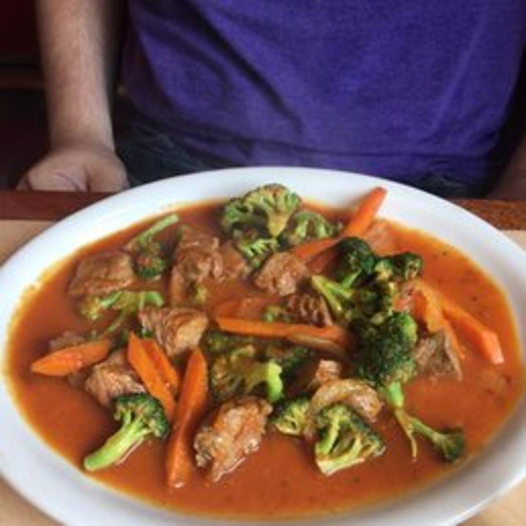 Tender slices of beef stir-fried with Tibetan spices, onions, bell peppers, and a savory sauce. A hearty and flavorful dish.