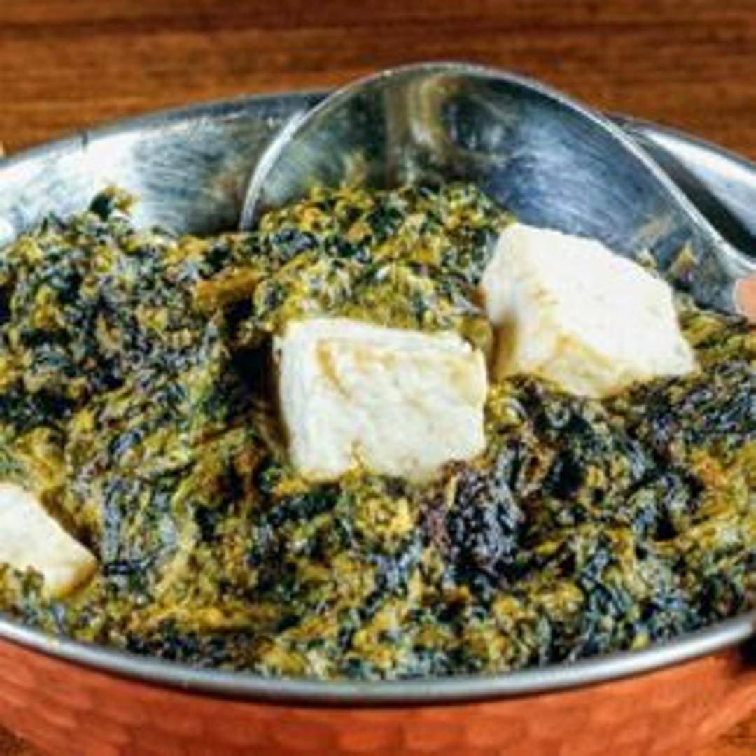 A classic vegetarian dish made with fresh spinach and cubes of Indian cheese (paneer). The spinach is cooked with garlic, ginger, onions, and aromatic spices, creating a creamy and flavorful sauce for the paneer. Served with rice or naan.