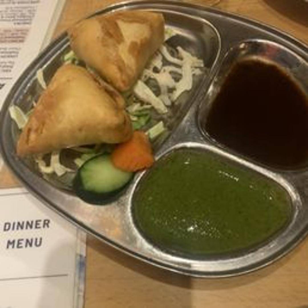 Crispy and flaky pastry filled with a savory mixture of spiced potatoes, peas, and other vegetables. Served with chutney.