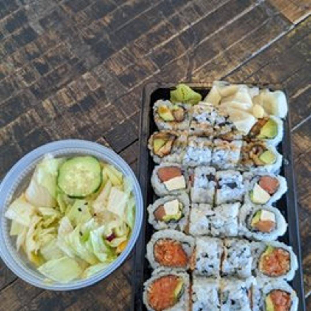 A lunch special allowing the customer to select any three standard sushi rolls from a predetermined list or the regular menu (restrictions may apply).
