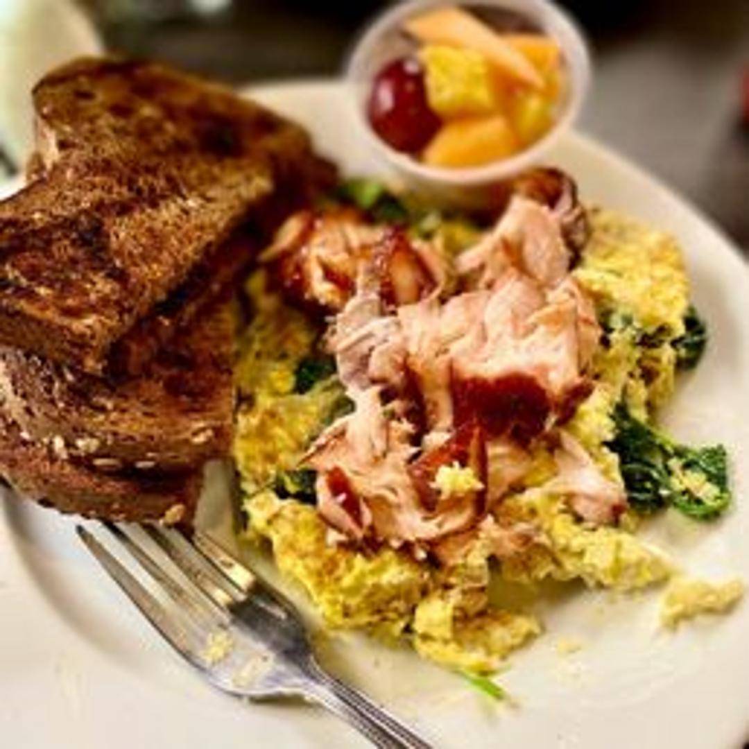 Finely sliced smoked salmon served with cream cheese, capers, red onion, and toasted bagel. Perfect for a light breakfast or lunch.