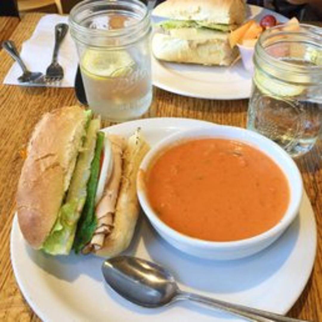 A delicious sandwich featuring sliced soy turkey, lettuce, tomato, and your choice of condiments on fresh bread.