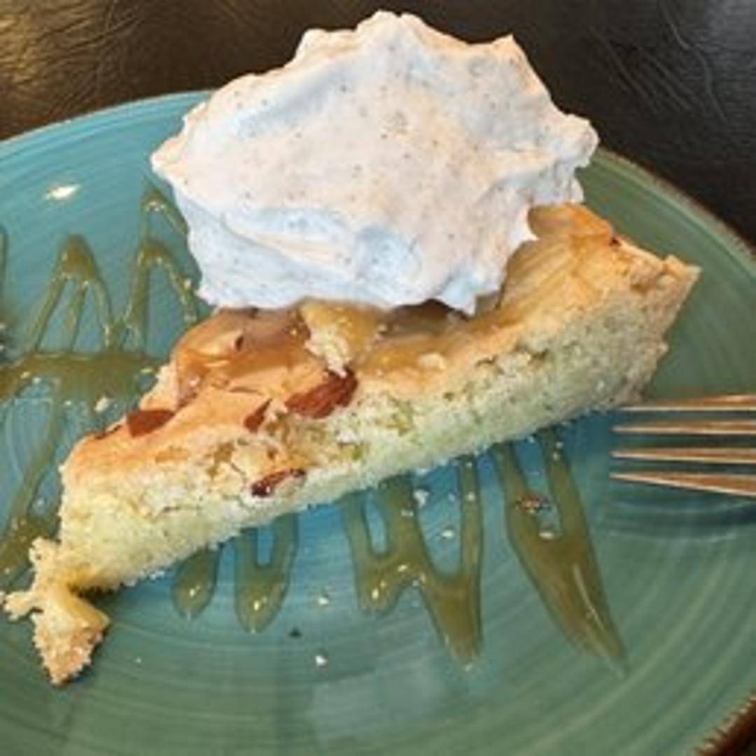 A moist and delicious almond butter cake, often served with a sweet glaze or dusting of powdered sugar.