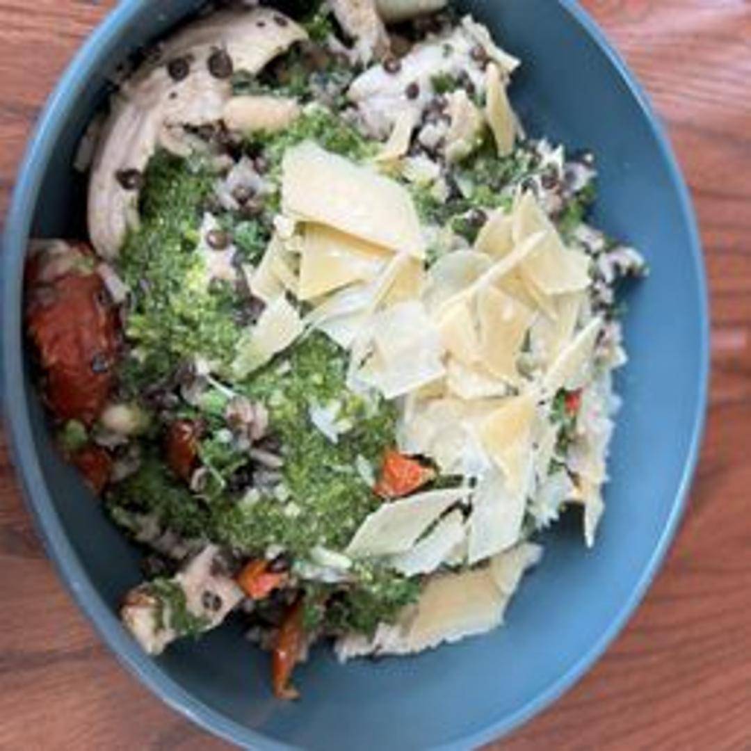A wholesome and flavorful bowl featuring a variety of grains, vegetables, and a savory umami dressing. A nutritious and satisfying meal option.