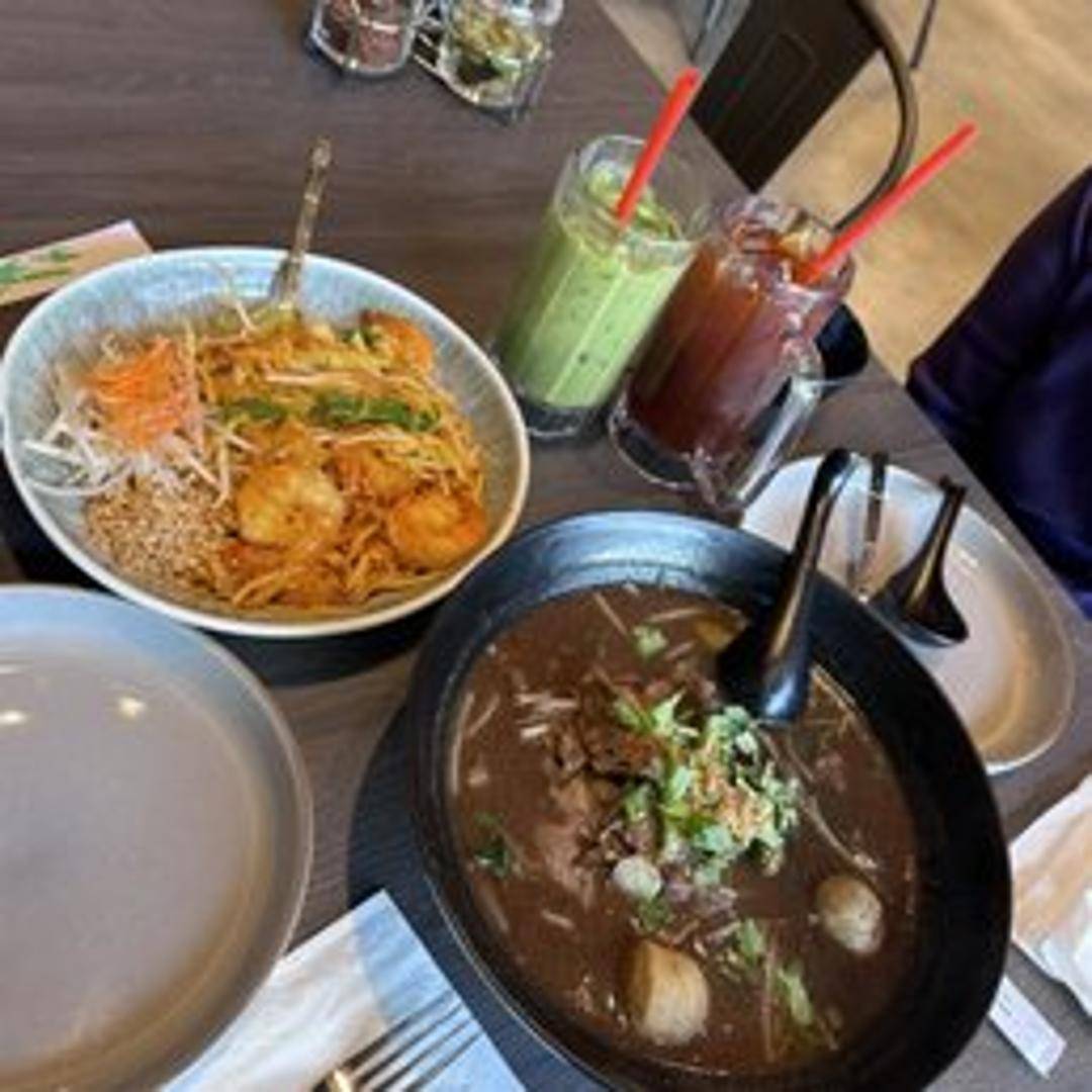 Likely refers to Green Curry; a creamy and flavorful Thai curry made with green curry paste, coconut milk, bamboo shoots, bell peppers, eggplant, and your choice of protein. Garnished with Thai basil.