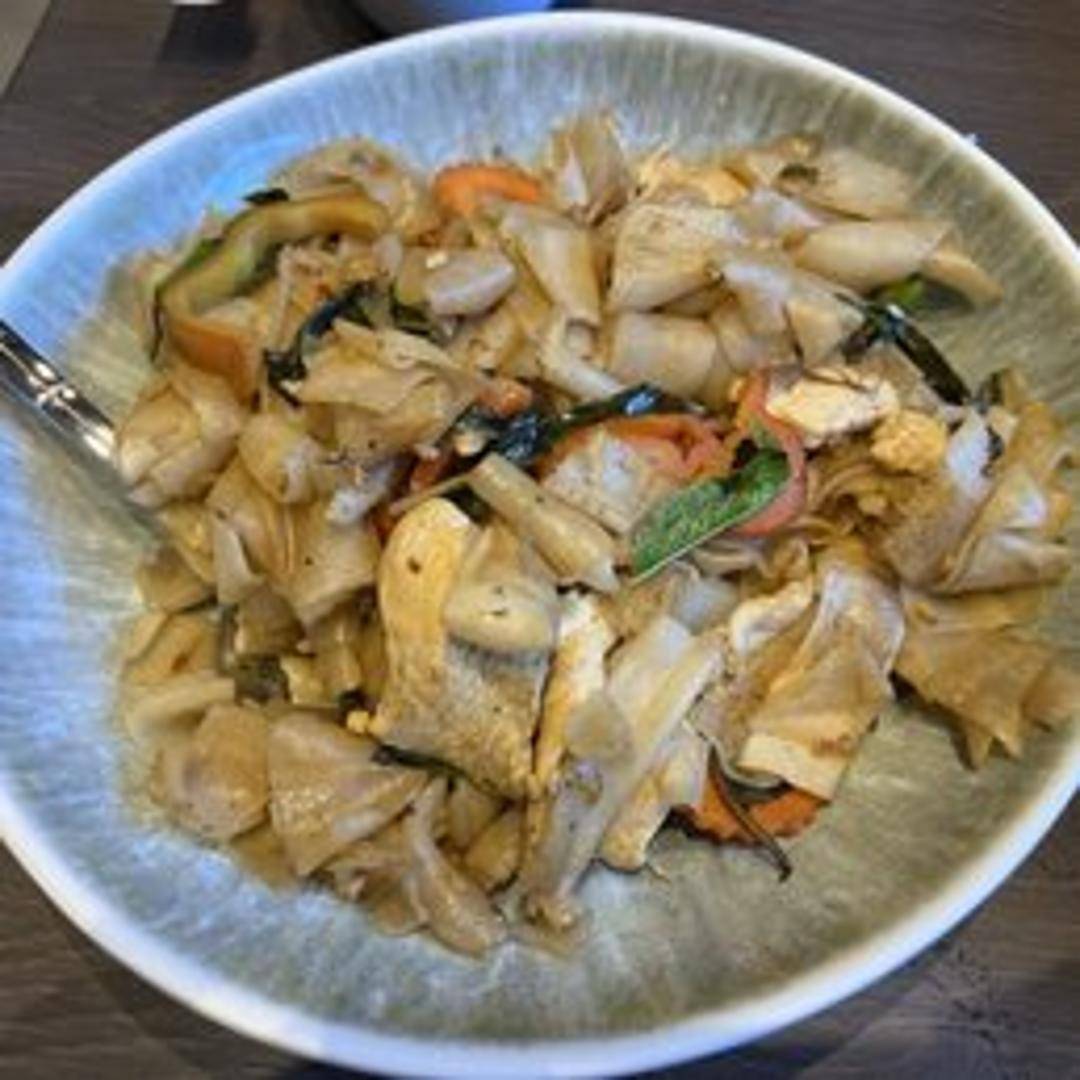 Stir-fried wide rice noodles with chili, garlic, Thai basil, bell peppers, onions, tomatoes, and your choice of protein. Also known as Drunken Noodles.