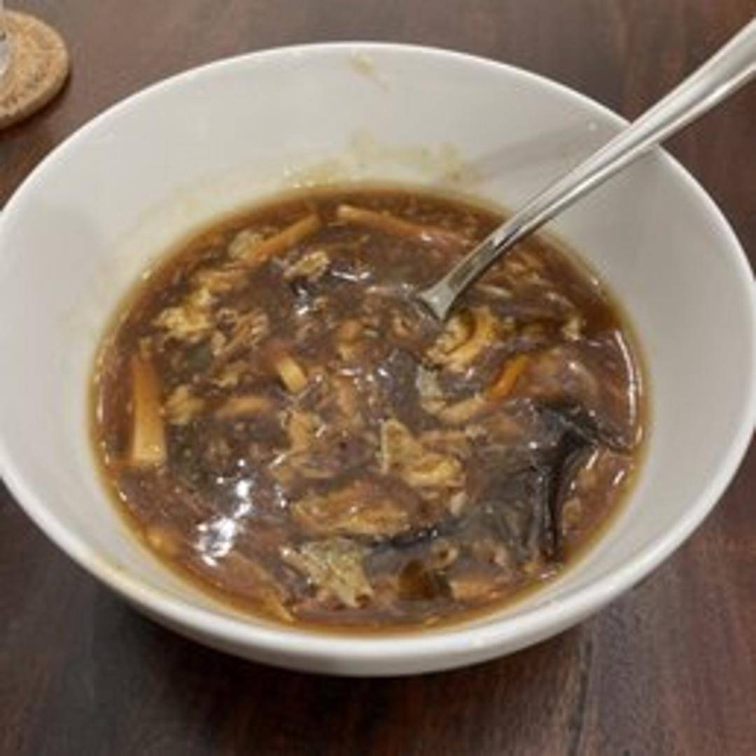 A tangy and spicy soup with a rich broth, featuring ingredients such as tofu, wood ear mushrooms, bamboo shoots, and egg. Flavored with vinegar, white pepper, and chili oil, this soup provides a balance of sourness, spiciness, and umami.