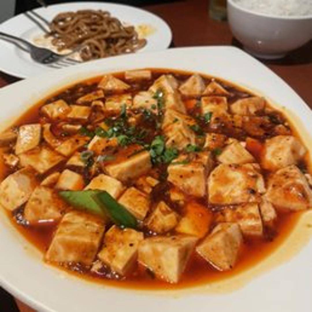 A classic Sichuan dish featuring soft tofu in a spicy and savory sauce made with fermented black beans, ground pork (or vegetarian substitute), chili oil, and Sichuan peppercorns. Served with rice.